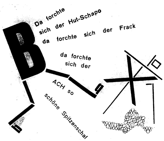 Pro Schwittersovy básně je typická originální grafická úprava. Jeho texty jsou zároveň výtvarnými artefakty.