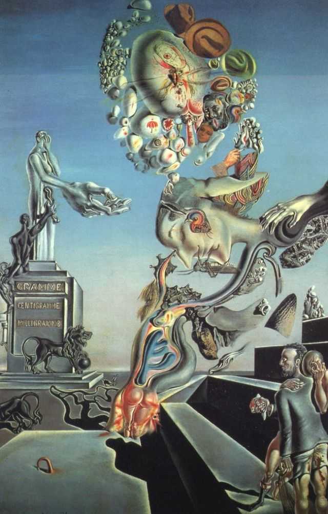 Španělský malíř Dalí dával okázale najevo vlastní genialitu. Za obdiv ke generálu Frankovi byl vyloučen ze surrealistické skupiny. Kromě obrazů, kreseb a různých fantastických objektů vytvořil knihy Tajný život Salvadora Dalího nebo Deník génia. Breton složil z jeho jména anagram Avida Dollars (Chtivý Dolarů).