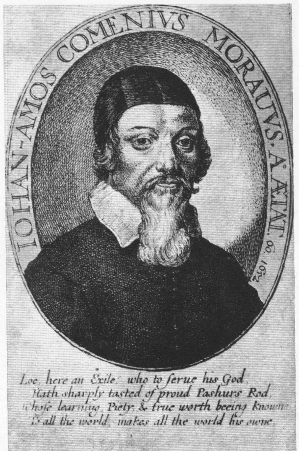 Komenský měl velmi pohnutý osud. Narodil se nedaleko Uherského Brodu (Nivnice), ale brzy osiřel. Po studiích v Herbornu a Heidelberku působil jako učitel a duchovní jednoty bratrské ve Fulneku, odkud utekl do Přerova, kde jeho první žena i oba synové zemřeli na mor. V roce 1628 musel odejít do polského Lešna. Stává se posledním biskupem jednoty bratrské a jako uznávaný reformátor školství působí v různých protestantských zemích. Při požáru Lešna (1656) přišel o veškerý majetek, včetně rozepsaných rukopisů. Psal latinsky i česky (Labyrint světa a ráj srdce), především spisy výchovné a náboženské. Pochován je v nizozemském Naardenu.