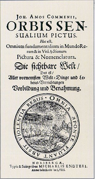Učebnice Orbis senzualium pictus (Svět viditelných věcí v obrazech) se skládá z obrázků s očíslovanými popisky v různých jazycích. Používali ji i čeští jezuité.