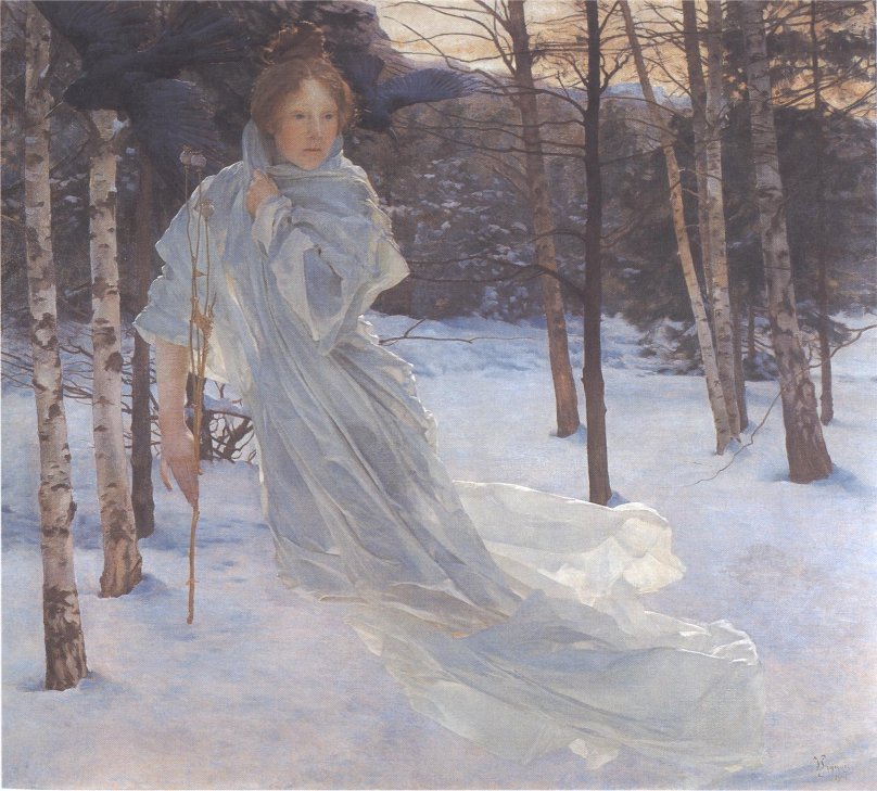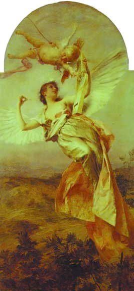 V Zeyerově románu se propojuje současnost s bájnou minulostí. Catarina vypije jed v poslední hodině Janova života, aby jejich duše vstoupily do nebe společně. Symbolicky si nasadí na hlavu čelenku, která byla nalezena v hrobě etruské dívky. Ta se nechala dobrovolně pohřbít s milovaným mužem.