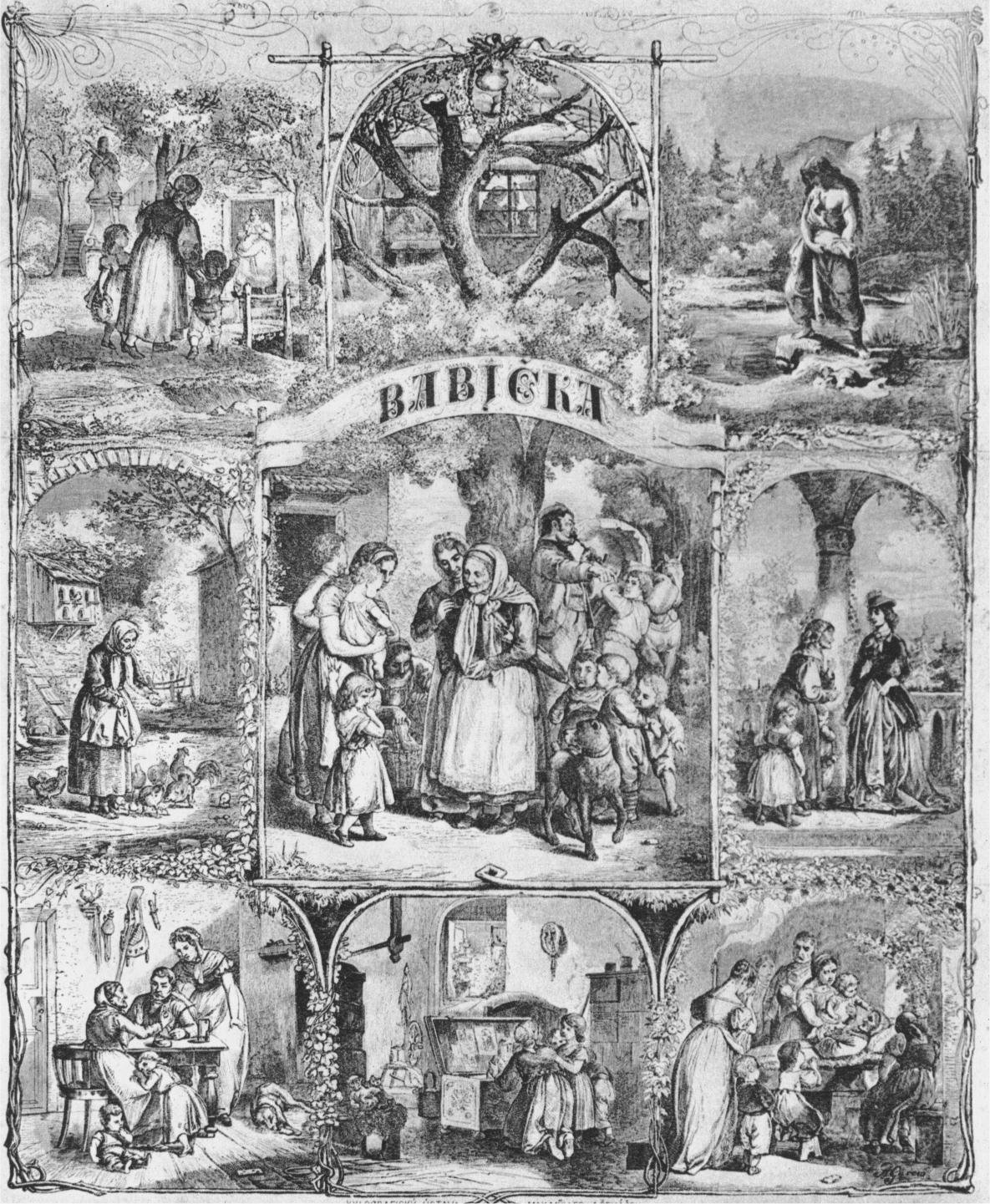 Rozsáhlá povídka Babička s podtitulem Obrazy venkovského života je idylickým zpracováním vzpomínek Boženy Němcové na dětství prožité v Ratibořicích. Děj se odehrává během jednoho roku, což autorce umožnilo podrobně popsat různé lidové zvyky. Babička přijíždí na Staré bělidlo a brzy si získá Barunku a další vnoučata svou laskavostí, moudrostí a úctou k tradicím. Pomáhá také cizím lidem, zejména Kristle a komtese Hortenzii, která pobývá na zdejším zámku. Dokonce si získá úctu samotné paní kněžny. Idylu narušuje pouze tragický příběh Viktorky, která se pomátla z nešťasné lásky.