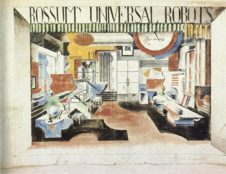 Feuersteinův scénografický návrh pro hru R.U.R.