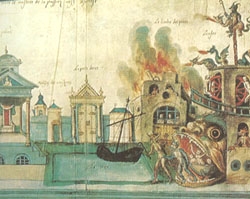 Mansionová scéna k pašijovým (velikonočním) hrám znázorňuje pekelný chřtán.