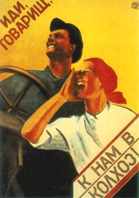 Pojď k nám do kolchozu, soudruhu! (plakát Věry Korablevové)