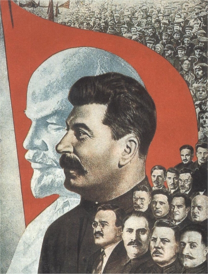 Komunistický režim nejprve využíval všechny umělce, kteří se postavili na jeho stranu. Brzy ale začalo pronásledování nejen jeho odpůrců, ale také avantgardních tvůrců, jejichž umění bylo označeno nálepkou zrůdný formalismus. V průběhu 30. let 20. století se stal oficiálním proudem socialistický realismus. Tento termín razil marxistický teoretik Lunačarskij a ideolog Ždanov. V jeho duchu tvořil Gorkij, Šolochov, Tolstoj, Fadějev nebo Leonov a řada podprůměrných umělců. Teoreticky vycházel socialistický realismus z myšlenek Marxe, Engelse a Lenina, který v knize Stranická organizace a stranická literatura definoval svou teorii odrazu. Podle Lenina umění vychází ze skutečnosti, ale zároveň na ni aktivně působí. Zásadní byl kladný vztah autora ke komunismu. Socialistický realismus tematicky čerpá z revolučních změn, zachycuje třídní boj, opěvuje pracovní hrdinství a budovatelský optimismus a odsuzuje nepřátele revoluce. Šlo tedy o nástroj oficiální propagandy a s uměním ani skutečností neměl socialistický realismus mnoho společného.