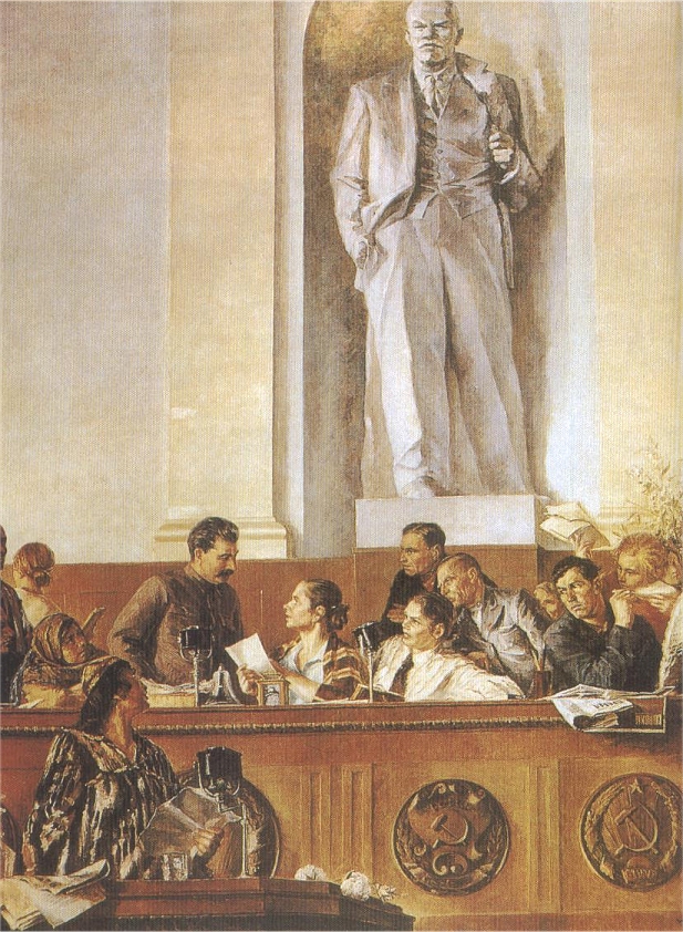 Jak je zobrazen Stalin na obraze Grigorije Šigala Vůdce, učitel, přítel?