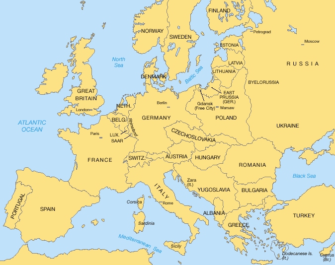 V poválečné Evropě se postupně prosadily diktatury postavené na nacionalismu. V Itálii se chopil moci fašistický diktátor Benito Mussolini, v Německu to byl Adolf Hitler, ve Španělsku generál Franco atd. Pouze Francie, Československo a severské země zůstaly do svého obsazení Německem demokraciemi.