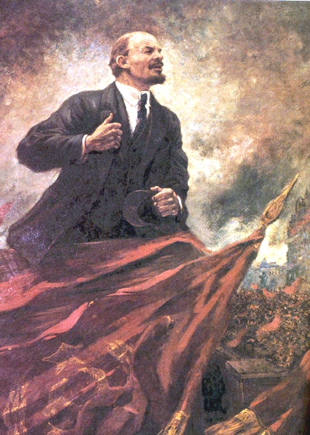 Učení Karla Marxe se rozhodl naplnit ruský politik Vladimir Iljič Lenin. Postavil se do čela bolševiků a rozpoutal tzv. Říjnovou revoluci (1917). Podařilo se mu dojednat mír s Německem a uzavřít východní frontu, ale rudí pučisté museli čelit obráncům starých pořádků (bělogvardějcům), které podporovali i zahraniční interventi. V občanské válce nakonec bolševici zvítězili. Místo utlačovaného proletariátu se ale k moci dostali straničtí funkcionáři a státní policie rozpoutala nebývalý teror proti vlastnímu obyvatelstvu. Represe se ještě prohloubily, když se moci ujal Josif Vissarionovič Stalin. Komunistický ideál harmonické beztřídní společnosti se v Rusku zvrhl v pravý opak – totalitní režim, který tvrdě potlačoval individualitu i odlišné názory a pro nějž neměl lidský život žádnou hodnotu. Pokusy vyvézt komunistickou revoluci z Ruska do dalších evropských států byly neúspěšné a podařilo se je potlačit už v zárodku, vznikly zde ale komunistické politické strany, které si získaly řadu nespokojených voličů především v době hospodářské krize. Sovětský režim je podporoval a prostřednictvím Komunistické internacionály (1919) fakticky řídil.
