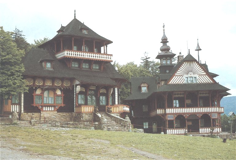 Jurkovičovy Pustevny v Rožnově pod Radhoštěm propojují secesní architektonické prvky s lidovými.