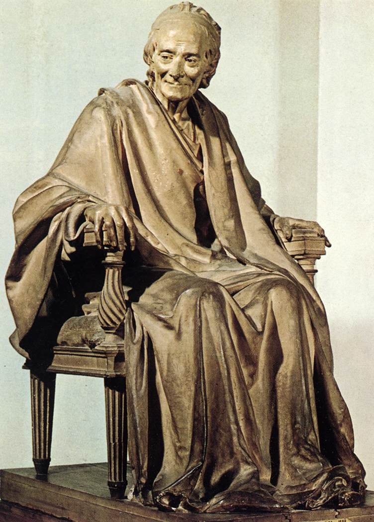 Voltaire [voltér], vlastním jménem François-Marie Arouet [fransoa mari arue], napsal přes 50 divadelních her (Irena, Mohamed čili Fanatismus, Semiramis, Čínský sirotek, Guebrové čili Tolerance...), eposy Henriáda a Panna Orleánská, prózy Candide, Mikromegas a Prosťáček, pojednání O snášenlivosti, Filozofické listy, Století Ludvíka XIV. a Historie Karla XII. Přispěl do Diderotovy Encyklopedie a sepsal Filozofický slovník. Voltaire se zastával nespravedlivě obviněných. Sám byl za epigram na Filipa Orleánského poslán do vězení a později musel emigrovat. Působil v Anglii, na dvoře pruského krále Fridricha II. a ve Švýcarsku.