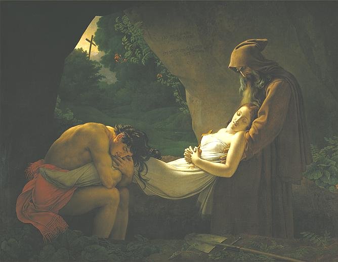 Pohřeb Ataly od francouzského romantického malíře Girodeta-Triosona [žirode trjoson] (1767-1824)