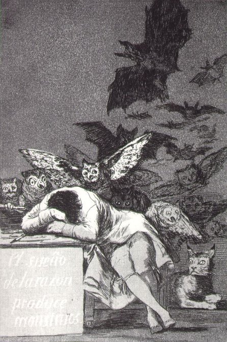 Goya: Rozmary č. 43 (Spánek rozumu rodí příšery)