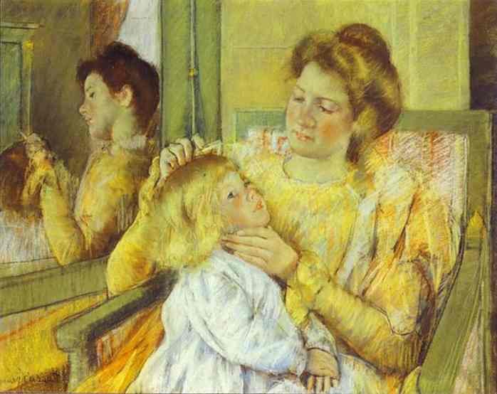 Cassattová: Matka česající vlasy svému dítěti