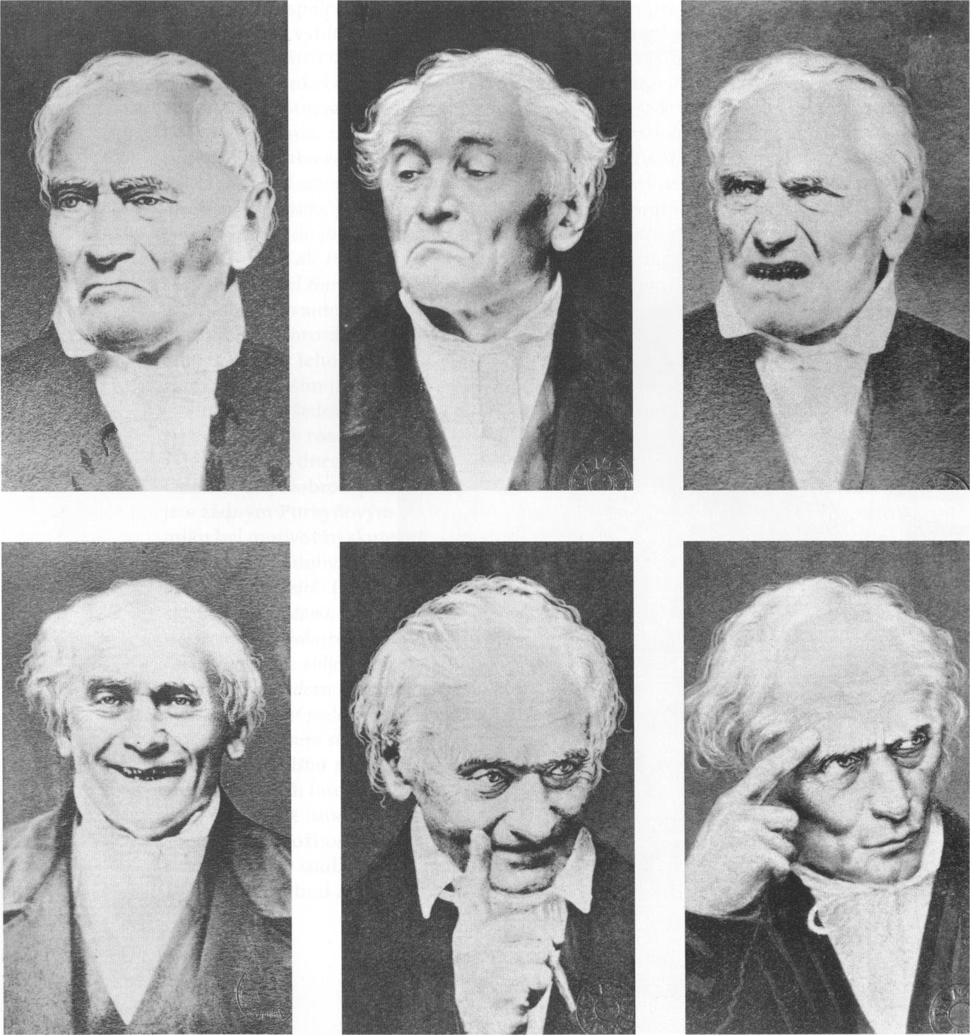 Šest studií emocí: Odmítavost, Opovržení, Rozhořčení, Dobrá pohoda, Šibalství, Přemýšlení (model: Jan Evangelista Purkyně, foto: Emanuel Lokaj)