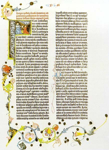 Nejnáročnějším Gutenbergovým projektem byla dvoudílná dvaačtyřicetiřádková Bible (1452-1455) a třídílná Bible třicetišestiřádková.