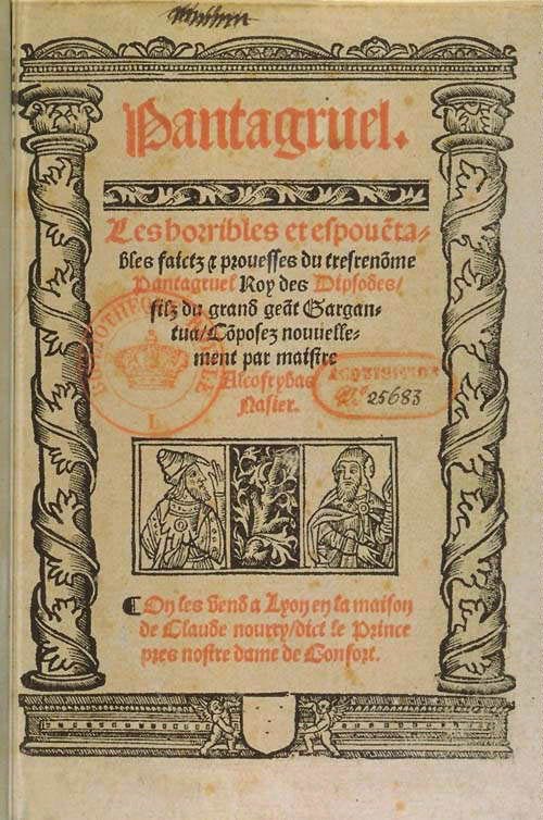 Satirický román Gargantua a Pantagruel vychází z lidových příběhů a mísí se v něm prvky renesanční i středověké. První kniha vypráví o výchově obra Gargantuy, jeho studiích v Paříži a založení utopistického opatství Thelémského. Druhá kniha popisuje různé kousky Gargantuova syna Pantagruela. Třetí kniha obsahuje Pantagruelovy úvahy a čtvrtá vypráví o jeho plavbě do věštírny Božské Lahvice, během níž navštíví řadu fantastických ostrovů. Pátou knihu zřejmě dopsal jiný autor.