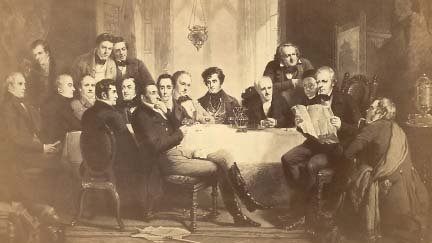 Thomas Faed: Walter Scott předčítá ze svého rukopisu