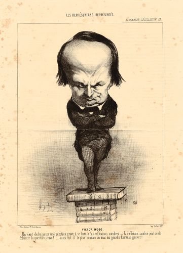 romány Chrám Matky Boží v Paříži, Bídníci, Dělníci moře, Devadesát tři nebo Muž, který se směje. Jeho předmluva k divadelní hře Cromwell je považována za manifest romantismu. Vrcholným dramatem je Hernani.