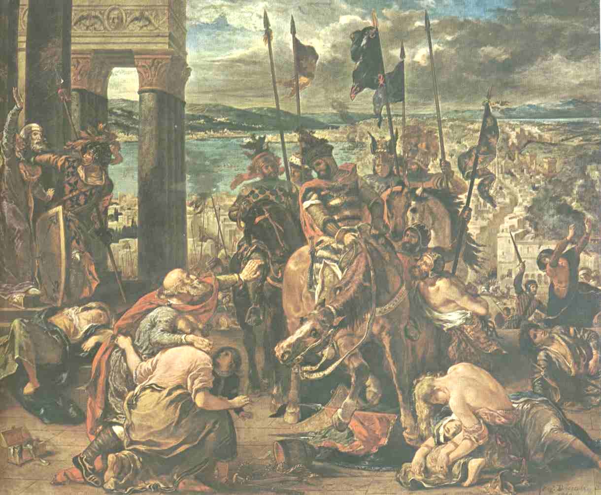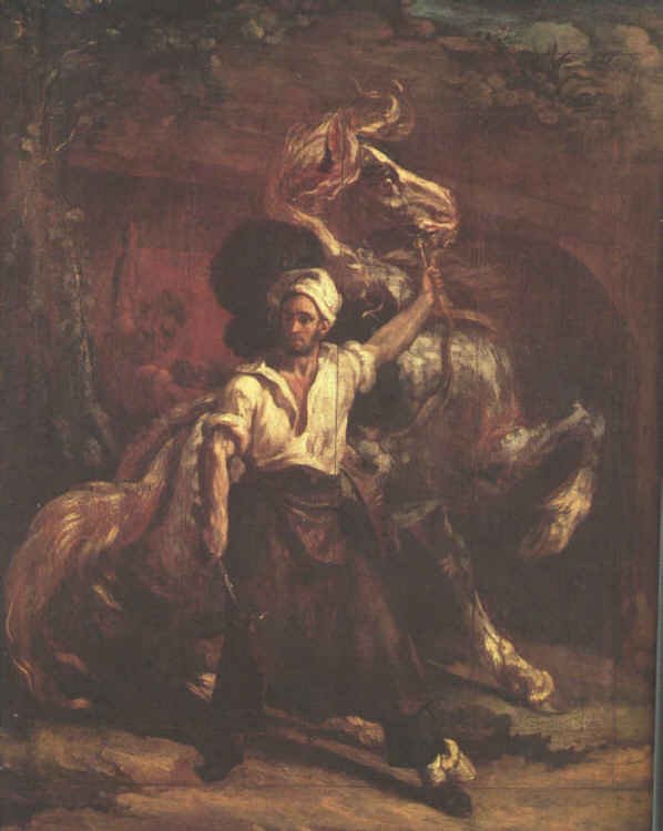Nejvýznamnějšími romantickými malíři byli Eugène Delacroix [ežen delakroa] (1798-1863) a Théodore Géricault [teodór žeriko] (1791-1824), autor dramatického obrazu Vor Medusy, který se zakládal na skutečné události – ztroskotání lodi Medusa. Sochař François Rude (1784-1855) vyzdobil Vítězný oblouk v Paříži reliéfem Odchod dobrovolníků s alegorickou postavou Marseillaisy. Antoine Louis Barye (1796-1875) vytvářel bronzové plastiky zvířat. Pierre-Jean David d’Angers [danže] (1788-1856) vytvořil pomník Grand Condé ve Versailles.