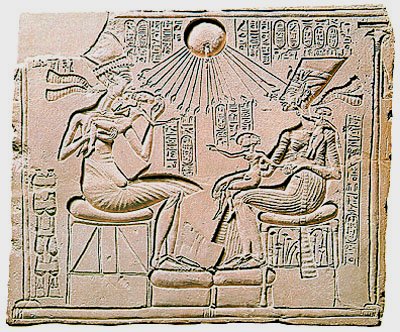 Faraon Achnaton s manželkou Nefertiti a dětmi