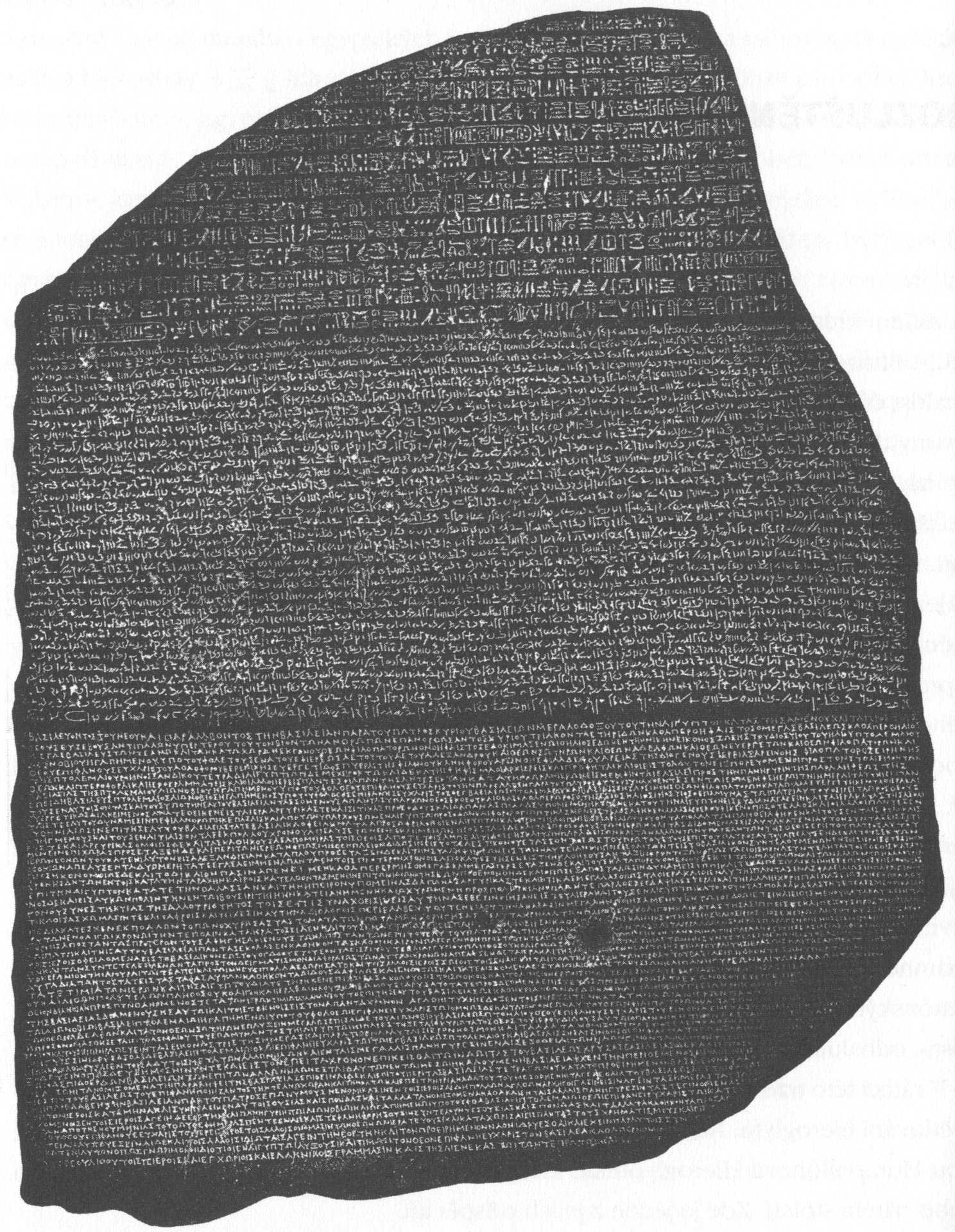 Francouzský egyptolog Jean-François Champollion [žan fransoa šampoljon] publikoval v roce 1824 svou práci Nástin hieroglyfického systému starých Egypťanů, která znamenala zlom v rozluštění egyptských hieroglyfů. S pomocí rosettské desky a dalších textů objevil základní zákonitosti tohoto starověkého písma – psalo se zprava doleva, zaznamenávaly se pouze souhlásky a rozluštil hlavní znaky.