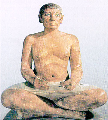Vápencová socha písaře (asi 2490 př.n.l.) v typickém sedu