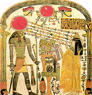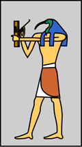 Bůh Thovt má hlavu ptáka ibise a v ruce drží písařské náčiní, protože je považován za mytického stvořitele hieroglyfů. Je bohem písma, tajemství a Měsíce.