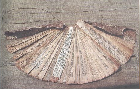 Sám Buddha své učení nezapsal, až do 1. stol. př.n.l. se předávalo ústní tradicí mezi mnichy. Ti se několikrát sešli, aby se shodli na závazném znění jeho myšlenek a dali řád novému náboženství. Tento text nazýváme Tři koše (Tipitaka) nebo pálijský kánon, podle jazyka páli, ve kterém byl složen. Tvoří ho Koš řádové disciplíny (pravidla pro život buddhistických mnichů), Koš pouček (vlastní Buddhovo učení) a Koš víry (méně významný dodatek připojený až na buddhistickém koncilu, který svolal Ašóka). Nejzajímavějšími texty z tohoto velmi rozsáhlého díla jsou Dhammapada – překládá se jako Cesta nauky nebo Slova víry (Buddhovy výroky o přátelství, zlu, trestu atd.) a džátaky (bajky, pohádky a mravoučné příběhy, které vyprávějí o minulých životech Buddhy).