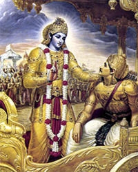 Součástí eposu Mahábhárata je Bhagavadgíta (Zpěv Vznešeného), což je báseň o smyslu života, která zachycuje rozmluvu mezi vozatajem Kršnou (vtělení boha Višnua) a bojovníkem Ardžunou. Před začátkem velkého střetu Pánduovců a Kuruovců Ardžuná váhá, jestli se má pustit do bratrovražedného boje. Kršna mu vyloží, že jako kšatrija (bojovník) se musí držet své dharmy, ale pokud všechny své činy odevzdá jemu, neznečistí se jeho duše jejich plody a vymaní se z věčného koloběhu převtělení. Toto učení se stalo jedním z hlavních proudů hinduismu, který po věřících žádá především oddanou lásku ke Kršnovi.