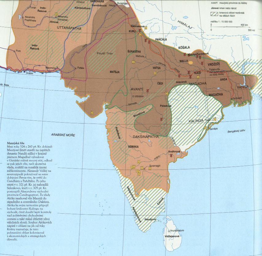 Buddha neuznával výsadní postavení bráhmanů, modlitby k bohům ani oběti. Jeho učení bylo určeno každému člověku bez ohledu na příslušnost k některé kastě, a proto se velmi rychle rozšířilo po celé Indii. Velkou zásluhu na tom měl i král Ašóka (272-232 př.n.l.), který se k buddhismu přihlásil a začal po celé zemi vztyčovat sloupy s prvními nápisy, které obsahovaly hlavní myšlenky Buddhova učení (např. Jen pravda vítězí). Nechal také vybudovat stúpu v Sánčí a svolal koncil, na kterém byla sestavena definitivní verze buddhistického kánonu, tzv. Tři koše (Tipitaka).
