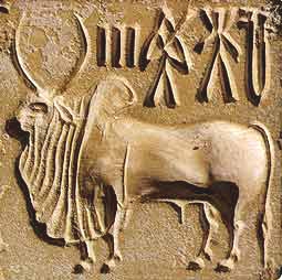 Pečeť z Mohendžodara s nejstarším indickým písmem.