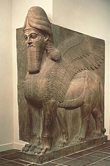 V Mezopotámii se našly obrovské sochy okřídlených býků a lvů s lidskou hlavou.