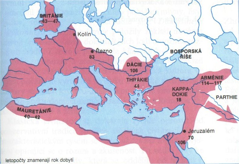 Největší rozsah římské říše za vlády císaře Trajána (117 n.l.)