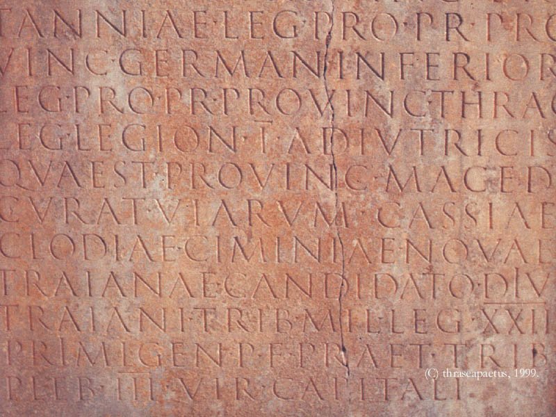 Poznámka: latinská výslovnost se v zásadě neliší od české, pouze i nezměkčuje předchozí souhlásku – Petronius [-ny-], ae čteme jako e – Aeneis [en-], místo ti vyslovujeme ci – Horatius [-ci-] a c zůstává pouze před i,e – Cicero [cicero], jinak se čte k – Catullus [ka-].