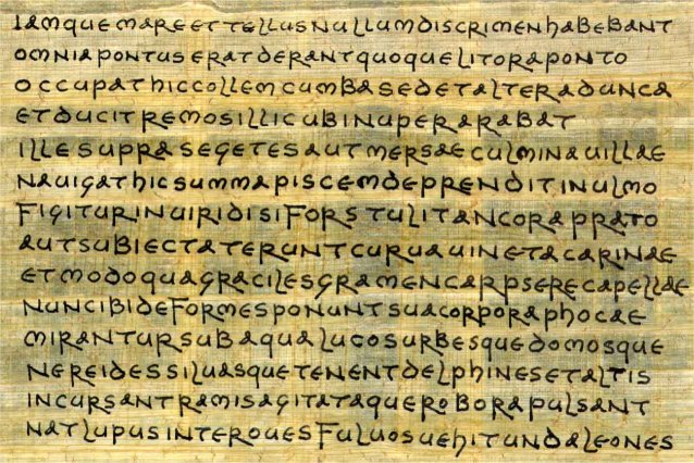 Ukázka z Ovidiových Proměn zapsaná na papyru