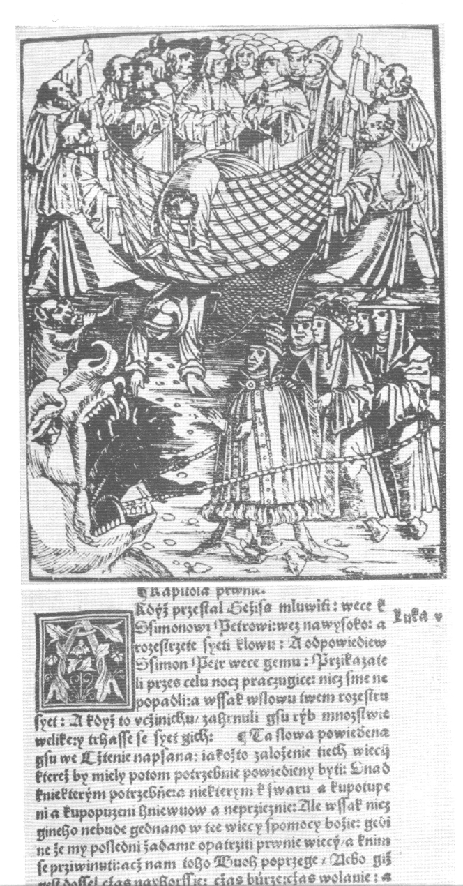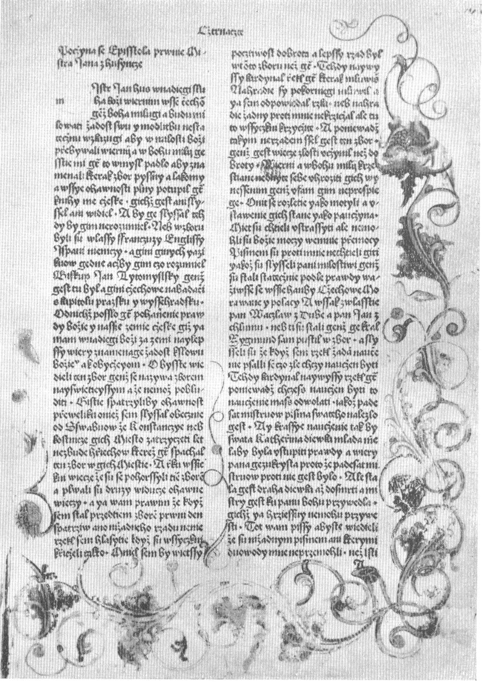 Mistr Jan Hus byl děkanem a od roku 1409 rektorem pražské univerzity. V kritice církve navazoval na učení Viklefovo a dalších kazatelů. Jeho latinské spisy De ecclesia (O církvi) a Questio de indulgenciis (Rozprava o odpustcích) byly určeny pro vzdělance. Česky napsal Výklad Viery, Desatera a Páteře, Knížky o svatokupectví a Postilu, tj. Výklad svatých čtení nedělních. Je také autorem výchovného spisu Dcerka a dopisů z Kostnice.